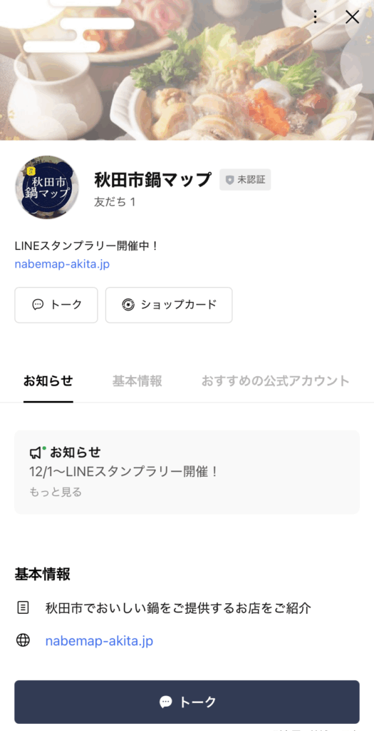 LINEで鍋マップ公式アカウントを友だち追加